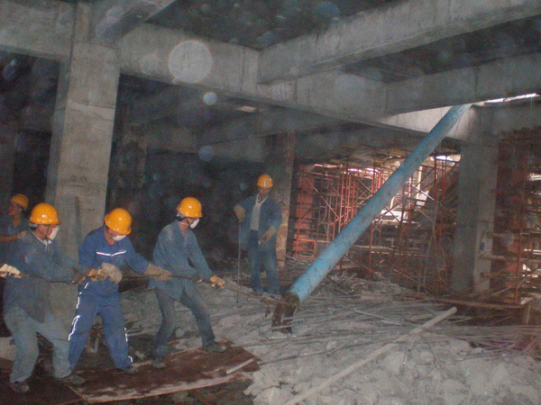 由于施工工期短、安裝量大、要求高,從廣東省、廣州市到區(qū)各級領(lǐng)導(dǎo)都相當(dāng)關(guān)注。分公司對此項目也予以很高的重視和期望,選派有豐富施工管理經(jīng)驗的陳岳剛擔(dān)任項目經(jīng)理,在五月初組織精兵強將全面開始施工。施工中,由于土建施工尚未完成交接,我方安裝工程與土建的混凝土澆筑呈交叉作業(yè),且長期的陰雨天氣導(dǎo)致地面層以下積水過多,潮濕陰暗,項目部克服一切困難,積極與土建單位協(xié)調(diào),變被動為主動,給自己騰出施工空間。
