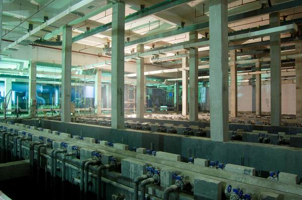 廣州市京溪地下凈水廠工程。該工程日處理污水10萬噸,安裝工程約4200萬元。設計采用先進的“膜生物反應器MBR污水處理工藝”,污水廠出水水質(zhì)達到一級A,相當于地表Ⅳ類水以上,稍作過濾即可飲用。整套處理工藝設備采用“地下全埋式”,征地面積大為縮小,僅相當于傳統(tǒng)工藝正常占地面積的1/10。整個廠設在地下,分2層,最深-20米,目前是采用此種工藝全球最大的地下污水處理廠。