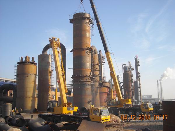 內(nèi)蒙古齊華礦業(yè)有限責(zé)任公司二期復(fù)合肥配套8萬噸合成氨項目,是入內(nèi)蒙不到兩年的內(nèi)蒙古分公司承接的第一個大化肥項目。最初的合同價是1000萬左右,經(jīng)過分公司領(lǐng)導(dǎo)的不懈努力和現(xiàn)場的突岀表現(xiàn),業(yè)主最終把包括造氣、脫硫、脫碳、變換、精脫、壓縮、醇烴化、氨合成、冷凍、循環(huán)水等幾乎全廠所有工段的安裝工作都交給了我方,估計最終的建安工作量將突破3500萬。由于該項目90%以上的設(shè)備都屬于“拆舊用舊”,因此施工難度很大。施工人員在正常安裝之前,需要對舊設(shè)備進行檢測和修護,還要剝除設(shè)備上厚厚的銹皮,給它穿上漂亮的“外衣”,又由于這些舊設(shè)備基本上都己找不到當(dāng)初的設(shè)備圖紙,參數(shù)不全,因此現(xiàn)在的設(shè)計工藝往往與設(shè)備對不上,很多地方都需要根據(jù)工藝流程現(xiàn)場來定位,更加大了我方的管理難度和工作量。