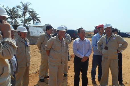 在察看大件設備準備工作現(xiàn)場時,吉明江聽取項目經(jīng)理劉興陽簡單匯報后,關切地詢問了職工到海南來工作、生活習慣不習慣。當了解到大多數(shù)職工都是兩地分居時,吉明江矚說,一定要多打電話,向家里多報平安。