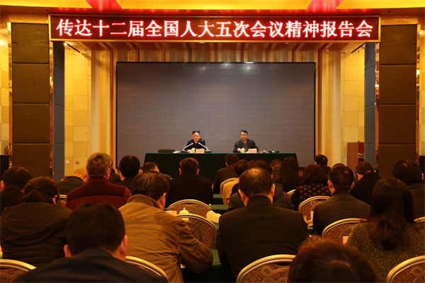 會上,劉德輝首先介紹了十二屆全國人大五次會議的總體情況。2017年3月5日至15日,肩負著湖南人民的重托,湖南代表團116位全國人大代表出席了在京舉行的第十二屆全國人民代表大會第五次會議。這次會議是在我國經濟社會發展承上啟下關鍵時期召開的一次重要會議,對實現“十三五”時期經濟社會發展良好開局、奪取全面建成小康社會決勝階段的偉大勝利,具有十分重要的意義。代表們依法行使民主權利,反映民意,共商國是,為國家和湖南發展積極貢獻自己的力量。接著,劉德輝從大會概況、大會主要精神、各項工作報告主要內容、中共中央政治局常委、中央紀委書記王岐山在湖南省代表團審議時的重要講話、代表討論的熱點問題和履職情況等六個方面,對大會精神作傳達。