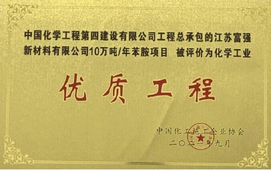 近日,中國化工施工企業協會公布2021年度化學工業優質工程獎項目名單,公司承建的宜都興發化工有限公司300萬噸/年低品位膠磷礦選礦及深加工項目硫酸裝置、呼倫貝爾金新化工有限公司新增備用鍋爐技改項目、江蘇富強新材料有限公司10萬噸/年苯胺項目等3個項目獲得化學工業優質工程獎。