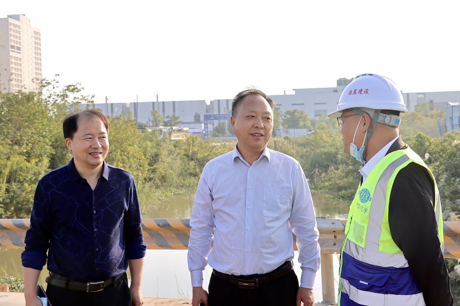 城陵磯新港區綜合管理部部長王文斌,港晨公司總經理李琦、綜合體項目經理喻愿鋒等陪同調研。(通訊員 張文婷)