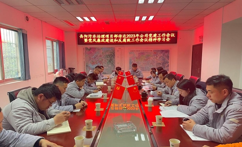 2月13日上午,岳陽污水系統(tǒng)綜合治理項(xiàng)目部召開專題會議,傳達(dá)學(xué)習(xí)集團(tuán)公司、公司2023年黨建工作會暨黨風(fēng)廉政建設(shè)和反腐敗工作會議精神。