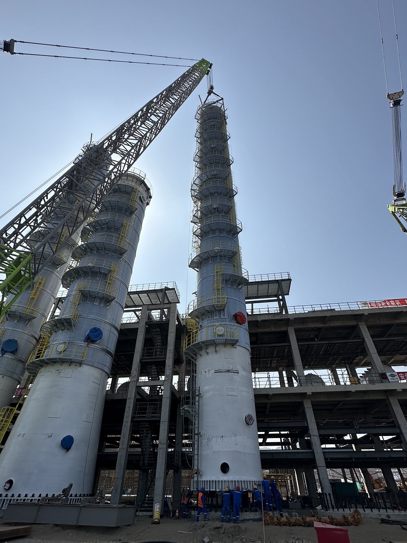 公司項(xiàng)目中心藍(lán)山屯河項(xiàng)目甲醛吸收塔一次吊裝成功