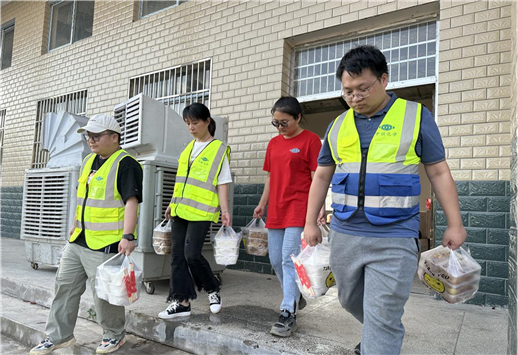 在抗洪救災的號角吹響后,市政公司綜合辦迅速響應,主動擔當,第一時間做好了應急部署和資源調度?!爸茏有酆皖櫾瞥蹦銈円敽孟蠕h,靈活響應各方需求;李穎負責聯系各大商家平臺,確保前線救援人員有充足的熱食供應;唐夢婷去對接災區村委,盡可能多的協調到休息場地,讓疲憊的救援隊伍能夠得到及時修整?!本C合辦的“家長”吳果葉逐一給每個人分配著任務,她的聲音清晰而堅定。