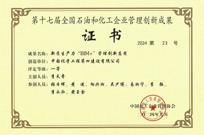 近日,從在山東曲阜召開的第十七屆全國石油和化工企業管理創新大會上傳來喜訊,公司申報的創新成果《新質生產力“BIM+”管理創新應用》榮獲全國石油和化工企業管理創新成果一等獎。