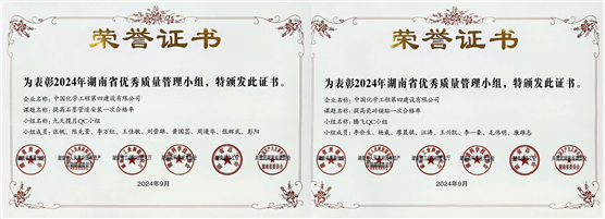 近年來,公司不斷強化質量管理工作,深入實施質量提升行動,切實組織開展QC小組活動,有力提高工程質量和客戶滿意度,形成了多項優秀QC成果。其中,今年7月,九天攬月QC小組、騰飛QC小組分別憑借其成果《提高石墨管道安裝一次合格率》《提高瓷磚鋪貼一次合格率》在湖南省第45次質量管理小組成果交流會上榮獲一等獎、二等獎。