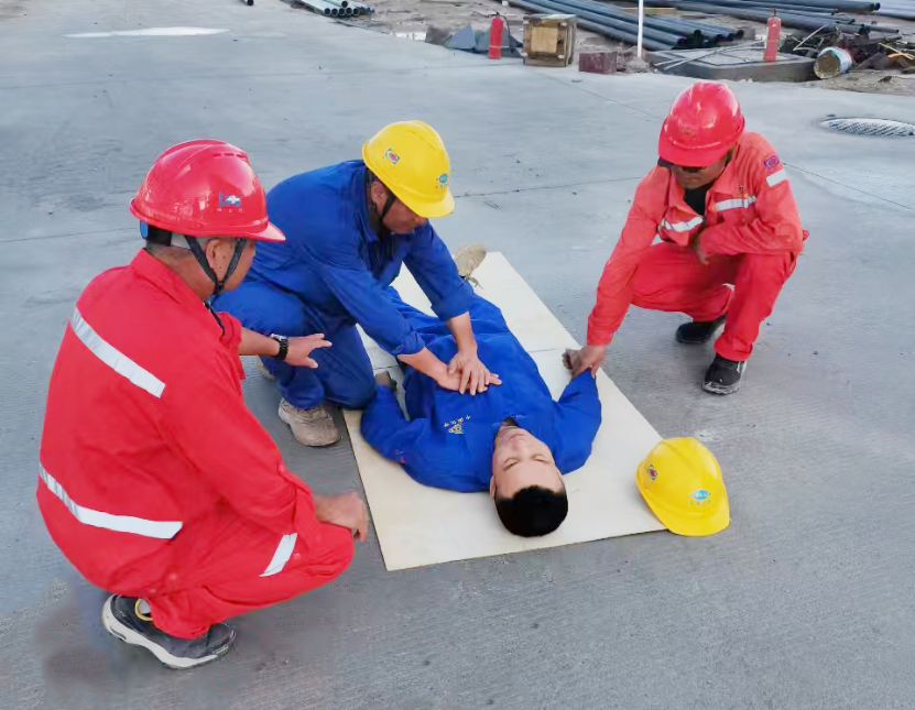 此次活動緊扣“人人講安全、個個會應(yīng)急”主題,應(yīng)急演練模擬施工現(xiàn)場高處作業(yè)人員因安全帶使用不當(dāng)發(fā)生墜落事故,設(shè)置險情發(fā)現(xiàn)、先期處置、預(yù)案啟動、現(xiàn)場救援、醫(yī)療救護(hù)、消息上報(bào)和事故調(diào)查7個環(huán)節(jié)。事故發(fā)生后,現(xiàn)場安全員立即上報(bào),項(xiàng)目部迅速啟動應(yīng)急預(yù)案,應(yīng)急指揮組、搶險救援組、醫(yī)療救護(hù)組、事故調(diào)查組協(xié)同聯(lián)動,搶險救援組快速設(shè)置警戒區(qū)域,醫(yī)療救護(hù)組對模擬傷員開展骨折固定和心肺復(fù)蘇演練。整個過程組織有序、響應(yīng)及時,有效檢驗(yàn)了項(xiàng)目應(yīng)急預(yù)案的實(shí)用性和可操作性。