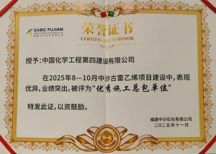 近日,在福建中沙古雷PC&BPA聯(lián)合裝置項(xiàng)目第七次高層會預(yù)備會暨項(xiàng)目推進(jìn)會上,由中國化學(xué)工程四化建華南公司承建的該項(xiàng)目五標(biāo)段安裝工程憑借過硬的施工履約能力、出色的項(xiàng)目精益管理水平,獲評業(yè)主單位“優(yōu)秀施工總包單位”與總包單位“優(yōu)秀質(zhì)量管理先進(jìn)集體”雙項(xiàng)榮譽(yù),公司副總經(jīng)理張日暉出席會議。