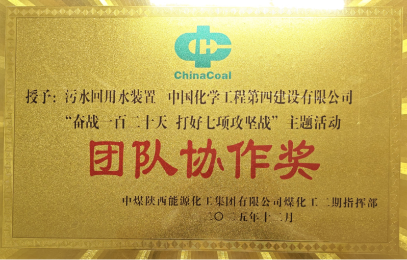 12月18日,中國化學(xué)工程第四建設(shè)有限公司黨委書記、董事長周鴻到中煤榆林煤炭深加工基地項目檢查指導(dǎo)工作,并應(yīng)邀出席中煤陜西能源化工集團有限公司煤化工二期指揮部組織召開的“奮戰(zhàn)一百二十天·打好七項攻堅戰(zhàn)”主題活動表彰會暨2025年工作總結(jié)會。在表彰會上,公司中煤榆林項目部憑借攻堅期間的優(yōu)異表現(xiàn)與突出貢獻,榮獲“團隊協(xié)作獎”。