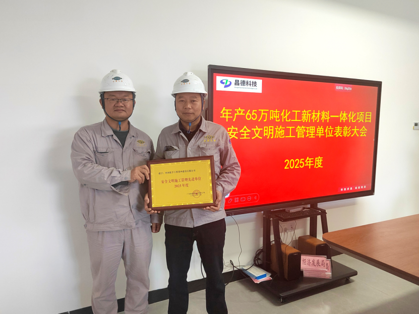 近日,公司承建的廣西昌德新材料有限公司年產(chǎn)65萬噸化工新材料一體化項目傳來喜報,項目部憑借嚴格規(guī)范的現(xiàn)場管控、過硬的安全業(yè)績,被業(yè)主授予“2025年度安全文明施工管理先進單位”稱號。