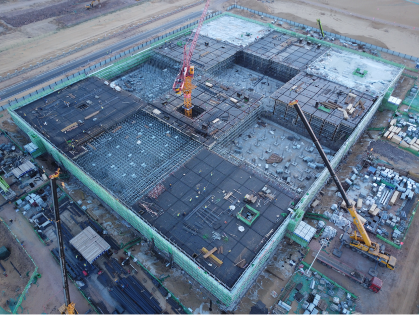 截至目前,項目各項建設(shè)工作正持續(xù)高效推進:高濃鹽水事故池主體結(jié)構(gòu)已完成70%,烯烴污水調(diào)節(jié)池底板澆筑完畢、頂板及池壁施工全面展開,變電所基礎(chǔ)結(jié)構(gòu)完成70%,裝置事故水罐主體結(jié)構(gòu)完成95%,機柜間基礎(chǔ)完成70%,地下管道施工已推進400米,后續(xù)工程正按計劃穩(wěn)步實施。