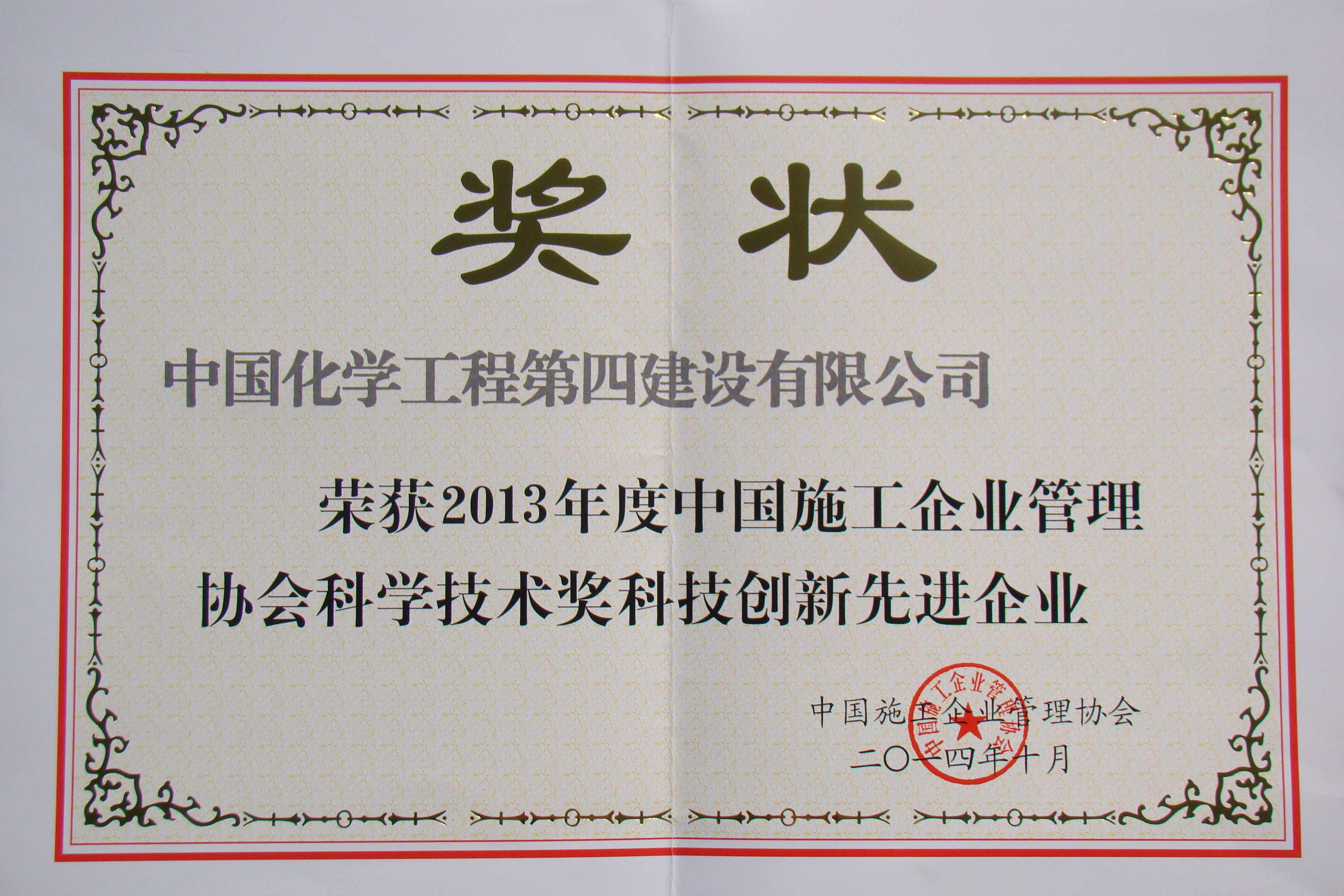 中國施工企業(yè)管理協(xié)會科學(xué)技術(shù)創(chuàng)新先進(jìn)企業(yè)