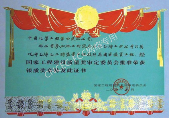 茂名30萬噸乙烯工程乙二醇裝置國家優(yōu)質(zhì)工程銀質(zhì)獎